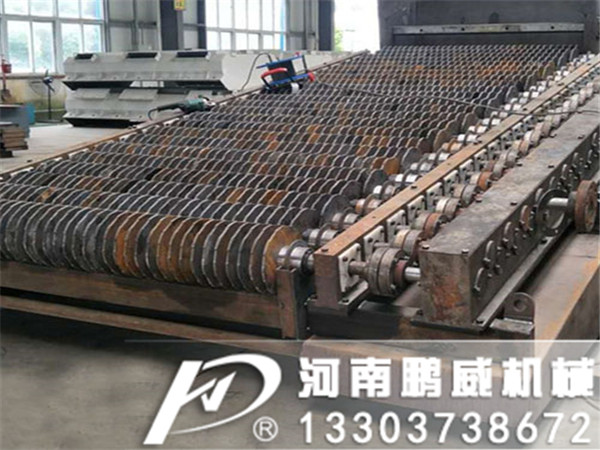 石灰石輥軸篩由多組同向轉動的篩軸組成,篩軸上裝有若干篩片,相鄰篩軸上的篩片相互交叉組成篩孔,小于篩孔的物料在運轉過程中透篩,大于篩孔的塊狀料在篩片上滾動從出料口排除。新型石灰石輥軸篩顛覆傳統篩分概念,適用篩分煤種,特別是高水分、高黏性、泥化嚴重的煤種,具有脫泥效率的優勢,將成為代替傳統篩分設備的新一代篩分機。滾軸篩的篩面由很多根平行排列的、其上交錯地裝有篩盤的輥軸組成,滾軸通過鏈輪或齒輪傳動而旋轉,其轉動方向與物料流動方向相同。為了使篩上的物料層松動以便于透篩,篩盤形狀有偏心的和異形的。為防止物料卡住篩軸,裝有安全保險裝置。滾軸篩全部為座式,有左傳動和右傳動之分,又分帶走輪和不帶走輪的,帶走輪的可在鋼軌上移動。