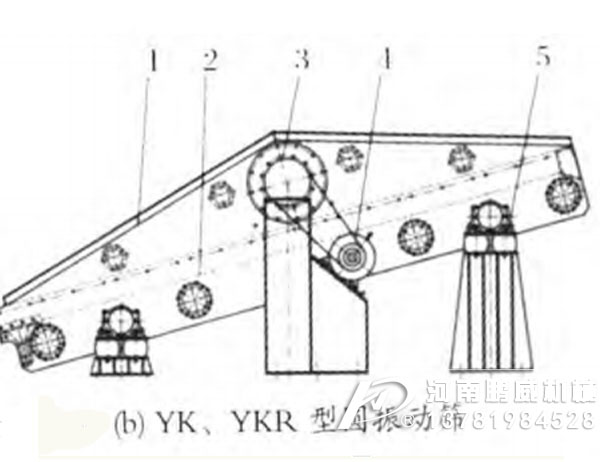 YKX稀油圓振動篩結(jié)構(gòu):由彈簧支承組、傳動裝置、篩箱、支承座、稀油潤滑振動器等組成。